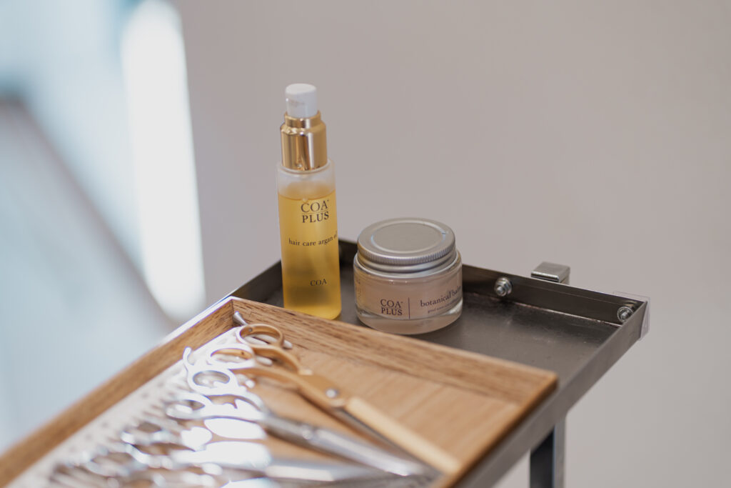 細田:まず、前提としてお客さまがWebなどで買えるものにこだわっています。サロンと同じものを使ったほうが、お家で髪型を再現しやすいからです。その中でも今回、特に愛用しているものを一つ選ぶとしたら「COA+botanical balm」ですね。自社開発でつくり上げたアイテムです。サンプリングのときからワクワクするような仕上がりだったんですよ。
