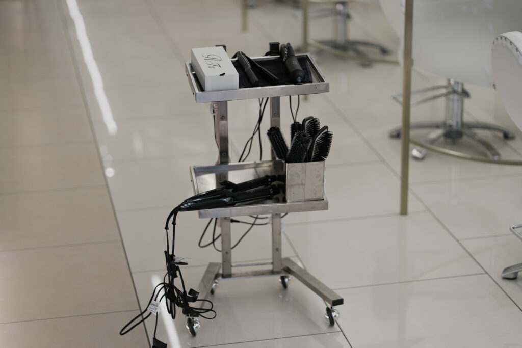 細田:スタイリング用ワゴンとカット用ワゴンに分けているところですね。すごく申し訳ないのですが、カットのお客さまと仕上げのお客さまが同時にいらっしゃることが多いんです。必要なものを取り出すために、ワゴンを移動していると時間のロスになってしまいます。お客さまに必要なものがすぐに取り出せるようにすることで、時間のロスを減らしているんです。ワゴンが小さいので、本当に必要なものしか入っていません。