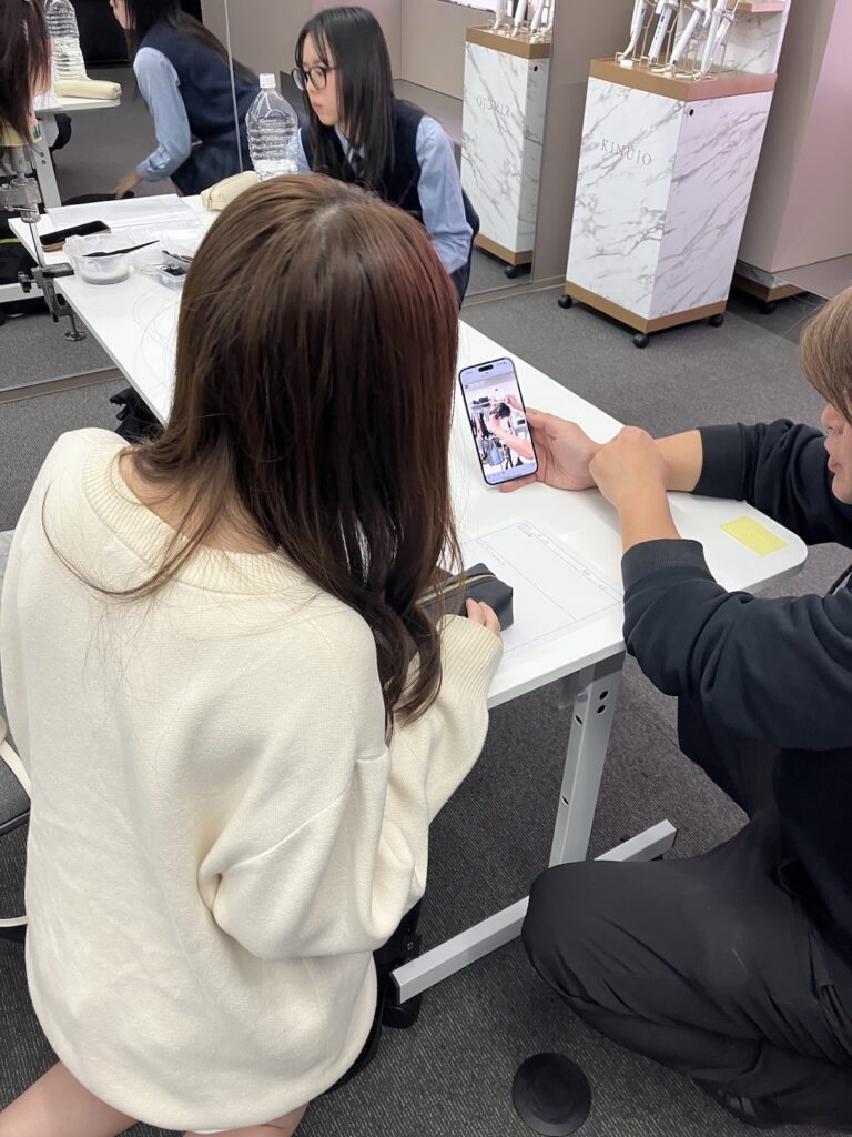 小川「最初はグレイリタッチをやりました。白髪染めみたいな。もともとカラーを学校でやったことがなくて、ここが初めてだったんですけど、講師の先生もすごく丁寧にわかりやすく教えてくれて」